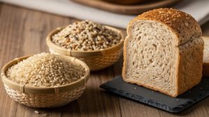 玄米、雑穀米、全粒粉パンなど。
